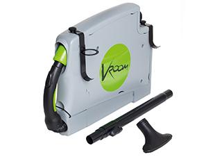 Vroom, das pfiffige Schlauchauszugsystem passt in jeden Küchenschrank. Zum Saugen wird der Schlauch herausgezogen, der Sauger schaltet sich dabei automatisch ein. Wie von selbst verschwindet er wieder in seiner Kassette. „Der Quicky-Sauger!“