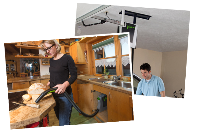 Für den schnellen Einsatz in der Küche wiederum bietet sich ergänzend unser automatisches Schlaucheinzug-System VROOM an. VROOM ersetzt mittlerweile häufig die klassische Sockeleinkehrdüse, weil hier kein Besen mehr benötigt wird und mit dem flexiblen Saugschlauch auch schnell mal Arbeitsflächen oder Schubladen ausgesaugt werden können.